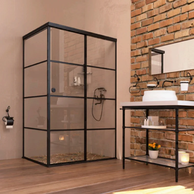 Το σύστημα γυάλινης καμπίνας μπάνιου SH 56 45 GRID μπορεί να χρησιμοποιηθεί για την κατασκευή είτε ευθύγραμμης είτε γωνιακής καμπίνας.